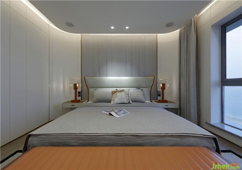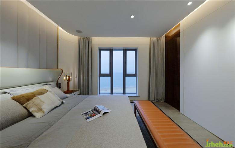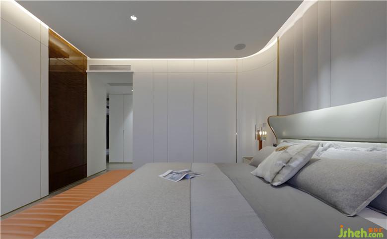 設(shè)計是感性與理性的平衡,主臥房間內(nèi)鋪設(shè)橡木地板,觸感細(xì)膩溫暖。床頭背景以紋理豐富的硬包鑲嵌金屬作為分割,比例精到,恰到好處!以沉靜的色調(diào)搭配極具時尚感的金屬和愛馬仕橙,打造高貴,奢雅的生活空間,并流露著一種柔美與力量并存的素雅之美……細(xì)節(jié)處的質(zhì)感是最能體驗奢華的存在,含蓄,而帶些驕矜,是極盡絢爛之后的樸素,是低調(diào)淡然的空間氣質(zhì)