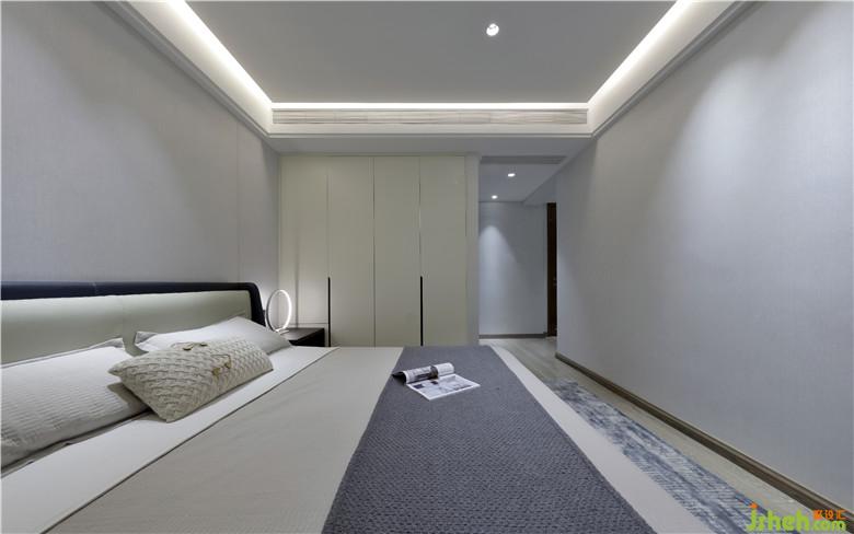 次臥則以高級灰為主?;疑怯珊诤桶谆旌隙傻?,混合的結(jié)果既非黑亦非白,而變成一種新的特別的中間色。這種混合不僅來源色彩,還來源于私密與開放空間交疊帶來的舒適感。白的純凈、灰的調(diào)和,兩者之下,將空間煉成一首冷峻卻又炙熱的詩。 看似簡單的工藝與材質(zhì),卻具備了當(dāng)代設(shè)計的美感和深度,蘊(yùn)含進(jìn)退有度的張力,崇尚自然簡單的內(nèi)核,在不經(jīng)意間觸摸心底。