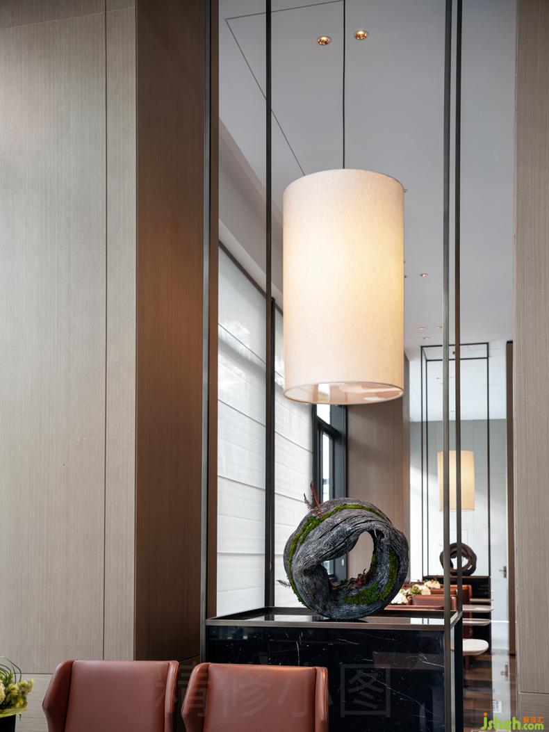 餐廳空間結(jié)合,自然的質(zhì)感與藝術(shù)的精奢氣質(zhì)融為一體,奠定了整個(gè)空間的基調(diào)。