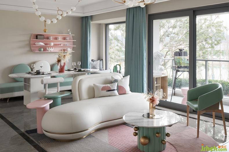 客廳里每一處的圓角家具,不僅給這浪漫的氛圍增添了可可愛愛的元素,同時(shí),也是對于家人的深一層保護(hù)。馬卡龍的色系,讓整個(gè)空間靈動活躍起來,也是保留在這空間下的每一個(gè)成年人與孩子的可貴童真。