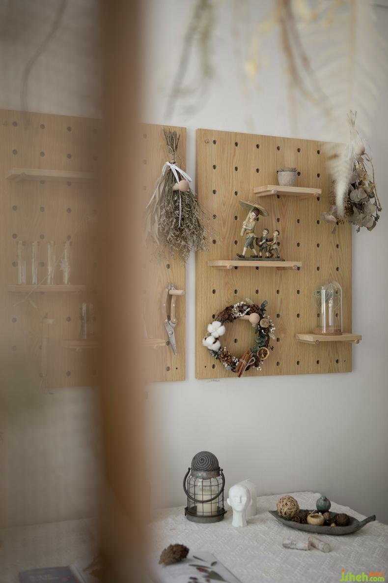 兼具工作與怡情的小空間里,總是能給人意想不到的驚喜與感動(dòng)。手工室整體采用木制材料和原木色調(diào),相較客廳的跳躍感,手工室有一種魔力,讓身處其中的人,一下子變得溫潤(rùn)許多。木材獨(dú)有的穩(wěn)重與儒雅,讓繁忙的工作間隙,怡然自得。墻面洞洞板的加入,使木質(zhì)的沉重帶來(lái)一絲活躍與動(dòng)感。