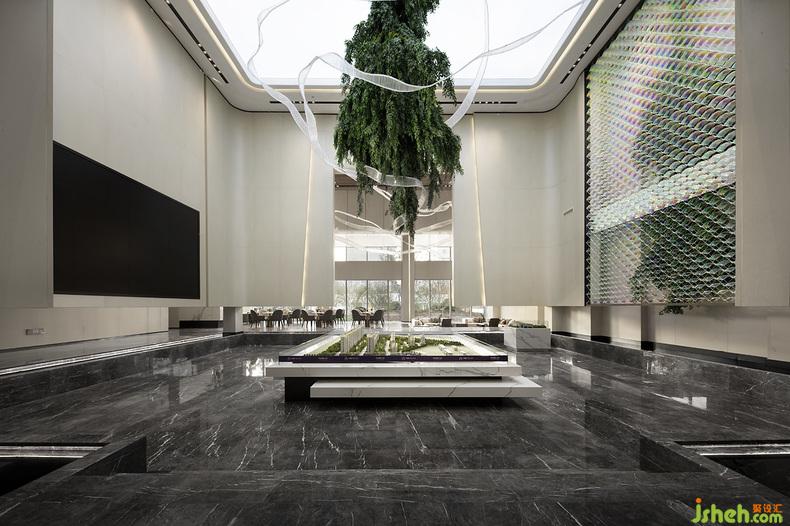 從天垂降的藝術(shù)裝置,以水為脈,以樹為神,綴以古今之脈,籠罩著在底下居住生活的后代子孫,享受生活的溫馨和能量。以“水”為脈絡(luò)貫穿始終,動(dòng)靜相結(jié)合,潤(rùn)物細(xì)無(wú)聲。于一水一木中發(fā)現(xiàn)內(nèi)心,營(yíng)造一個(gè)“寄情于山水之間”的現(xiàn)代生活方式。