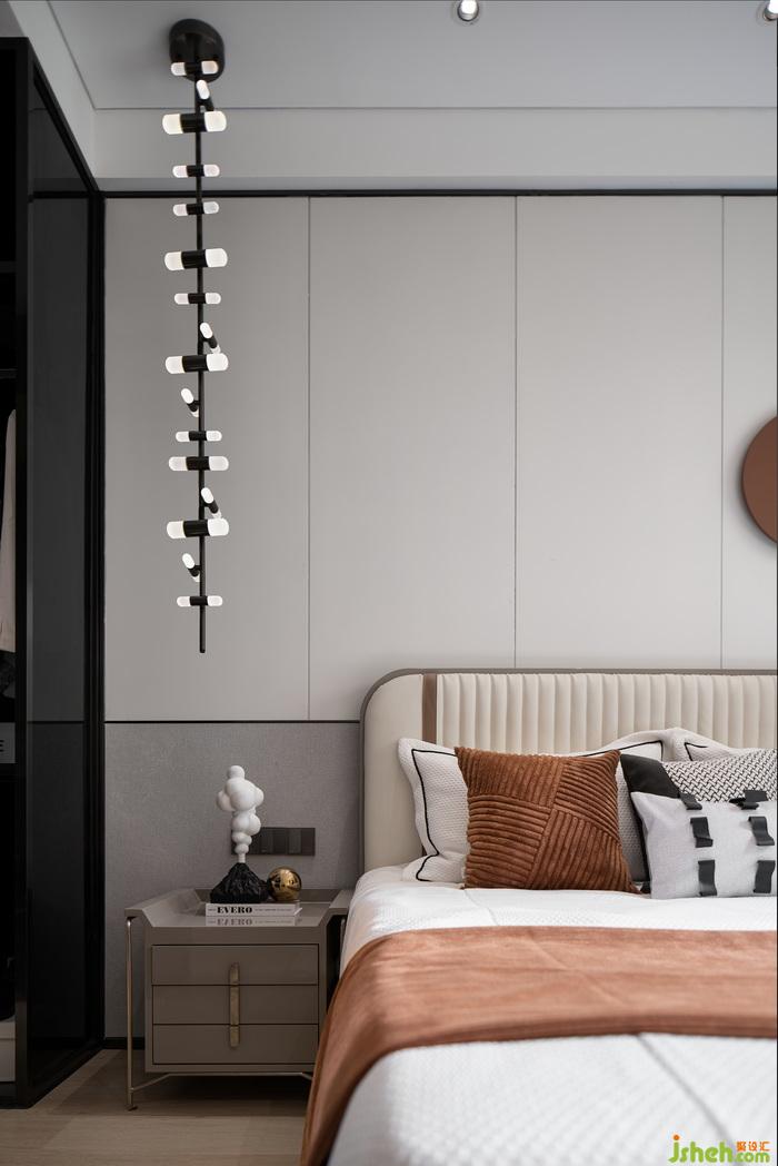 在空間整體軟裝配飾上,樣板間設(shè)計(jì)師以調(diào)性柔美、色彩素雅的干花藝作為主要裝飾元素,構(gòu)建沉靜、柔和、自然的調(diào)性,使得整個(gè)空間充滿溫潤的詩意,仿佛置身于“樹樹皆秋色,山山唯落暉”的戶外秋色之中。