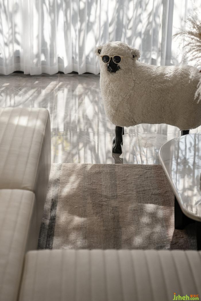 客廳米白色的舒軟沙發(fā)搭配造型可愛的動(dòng)物家具,樣板間設(shè)計(jì)構(gòu)成親子互動(dòng)區(qū)域,情感在這里升溫與凝聚。陽光透過落地玻璃窗照入室內(nèi),在窗簾與地面上形成美妙的枝葉光影,影隨風(fēng)動(dòng),一人或與家人一起,閑看庭前花開花落,漫隨天外云卷云舒,享受靜謐優(yōu)雅的自然之美。