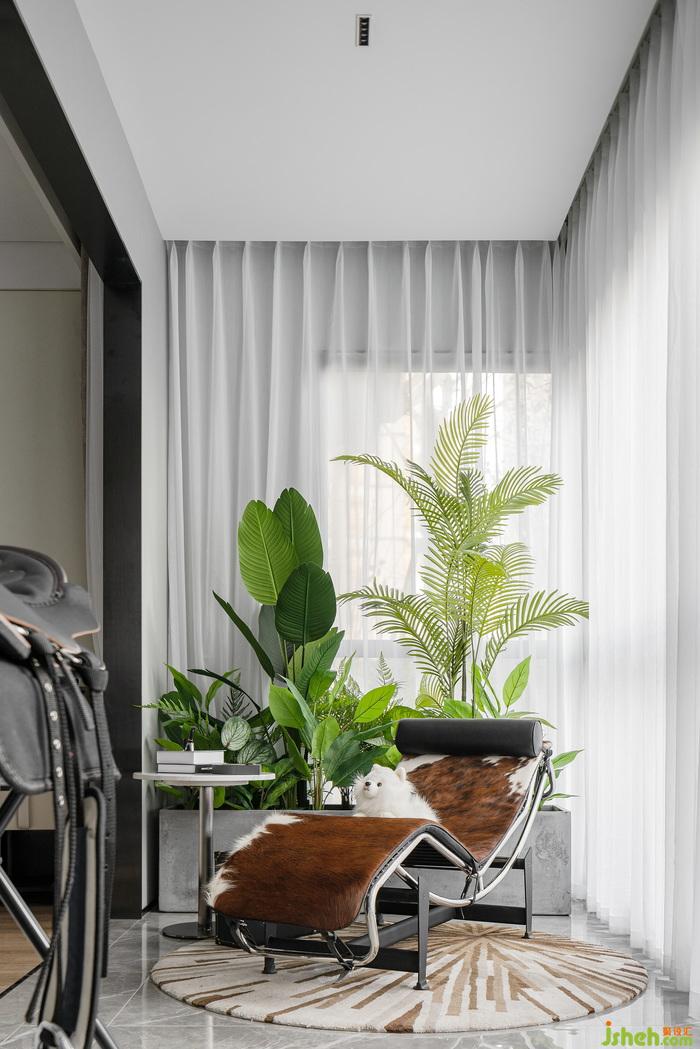 主臥陽臺(tái)大面積落地玻璃窗,綠植在一旁悄然生長,明朗安靜的角落里陽光充盈,散發(fā)出自然的活力與生機(jī)。一把躺椅,一杯花茶,一本小書,在休閑的日子里感受午后愜意的陽光,隨著時(shí)間、氣候的變化感知窗外四季的光景,捕捉每一刻的小幸福。