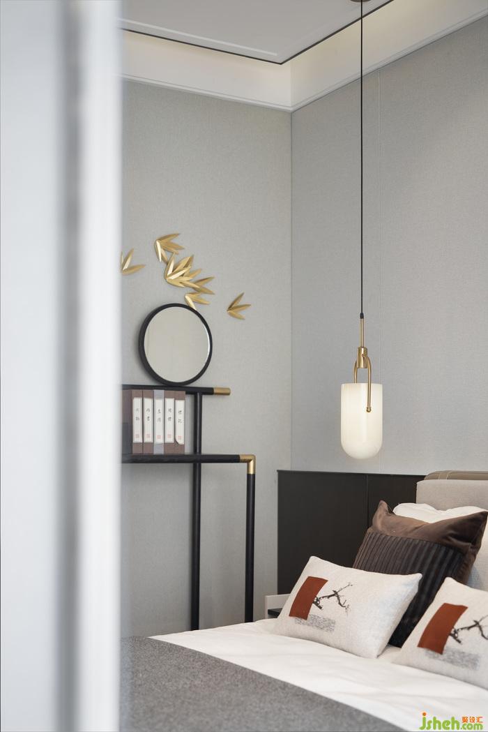 主臥與客臥以沉穩(wěn)的灰、黑色調(diào)為基底,再以干凈素雅的白色進(jìn)行調(diào)和,些許中國(guó)紅點(diǎn)綴其中,東方的美感與韻味悄然輕盈地在空間中呈現(xiàn)。