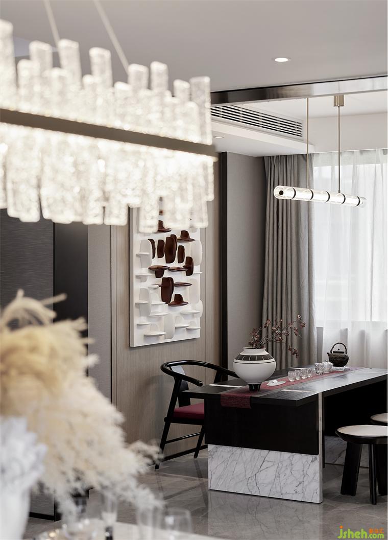 包括茶室,整個公區(qū)似格局被打開,動線被放逐,樣板房設計元素被隱去,甚至文化被平衡。就像找到了一個安心的休憩地??臻g與生活互為聯(lián)系,不事張揚,也絕不雷同。