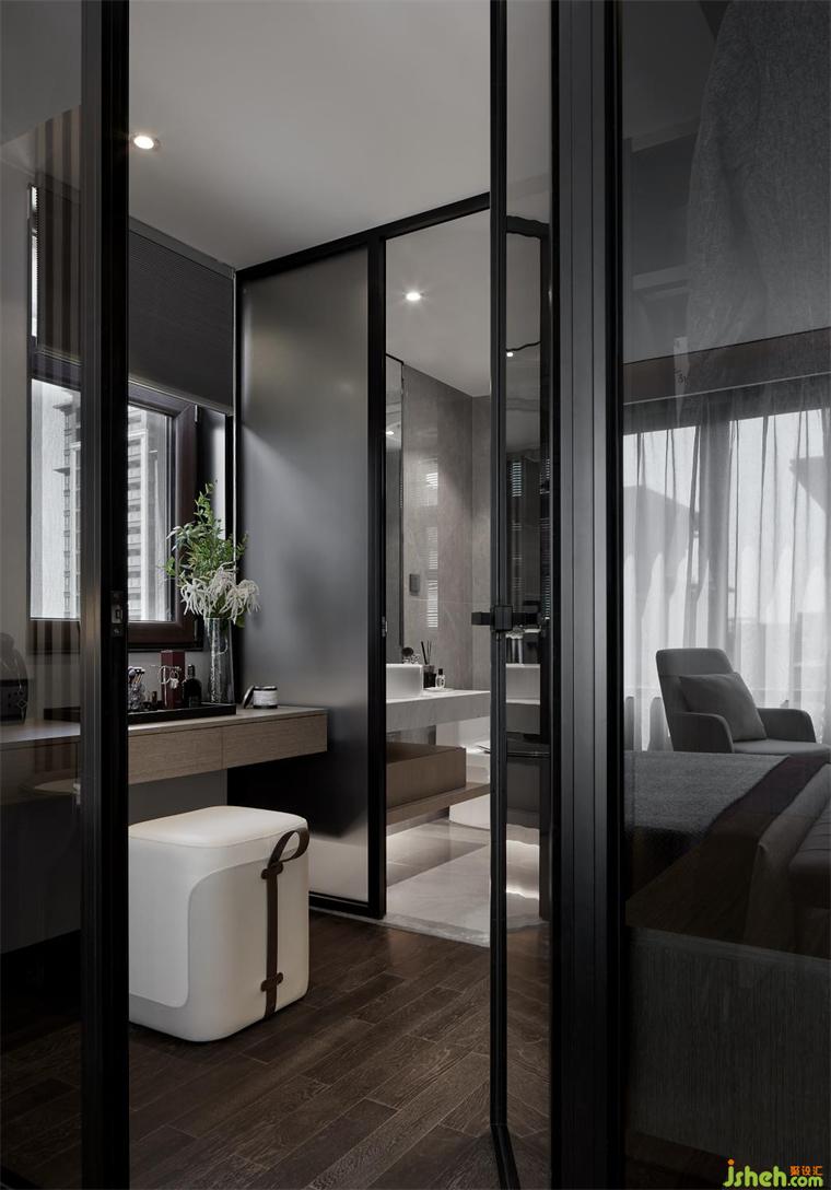 二層主臥克制守序,色調柔和,氛圍舒心,家具、樣板房設計用色和裝飾美學混用,不管窗外如何喧囂吵鬧、紅塵紛擾,你只想沉浸于此。它不僅是身體的停靠處,更是精神的棲息地。