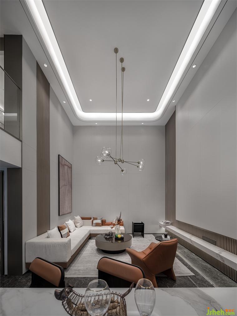 依托于庭院優(yōu)美的自然環(huán)境,設(shè)計(jì)師透過(guò)寬大的落地玻璃窗建立室內(nèi)外的連接,樣板間設(shè)計(jì)創(chuàng)造開闊、流動(dòng)的空間感,同時(shí)引美景入室,營(yíng)造輕松、令人心曠神怡的場(chǎng)所氛圍。米白和高級(jí)灰主色調(diào)結(jié)合留白與平衡的設(shè)計(jì)手法,讓空間于悄然中生發(fā)幾分愜意,生長(zhǎng)幾分從容,度假的悠閑也滲透其中……