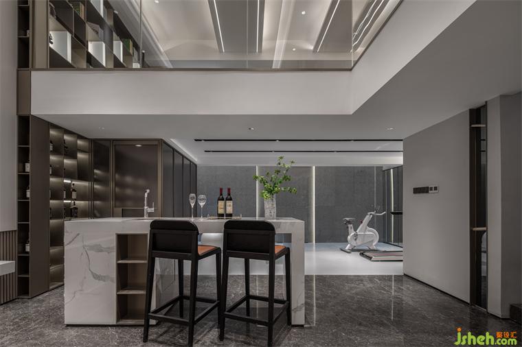正如中村好文所說(shuō):“所謂住宅,必須是讓人內(nèi)心安穩(wěn)地、豐富地、融洽地持續(xù)住下去的地方”。一個(gè)好的居所,樣板間設(shè)計(jì)應(yīng)該是豐富的、容納多種生活可能的。負(fù)一層結(jié)合度假社交娛樂(lè)需求,以私人派對(duì)模式進(jìn)行空間布局,設(shè)置吧臺(tái)、藏酒區(qū)、會(huì)客廳,健身房、棋牌室等,構(gòu)筑開放多元的休閑娛樂(lè)場(chǎng)景,打造自在悅居的生活形態(tài)。