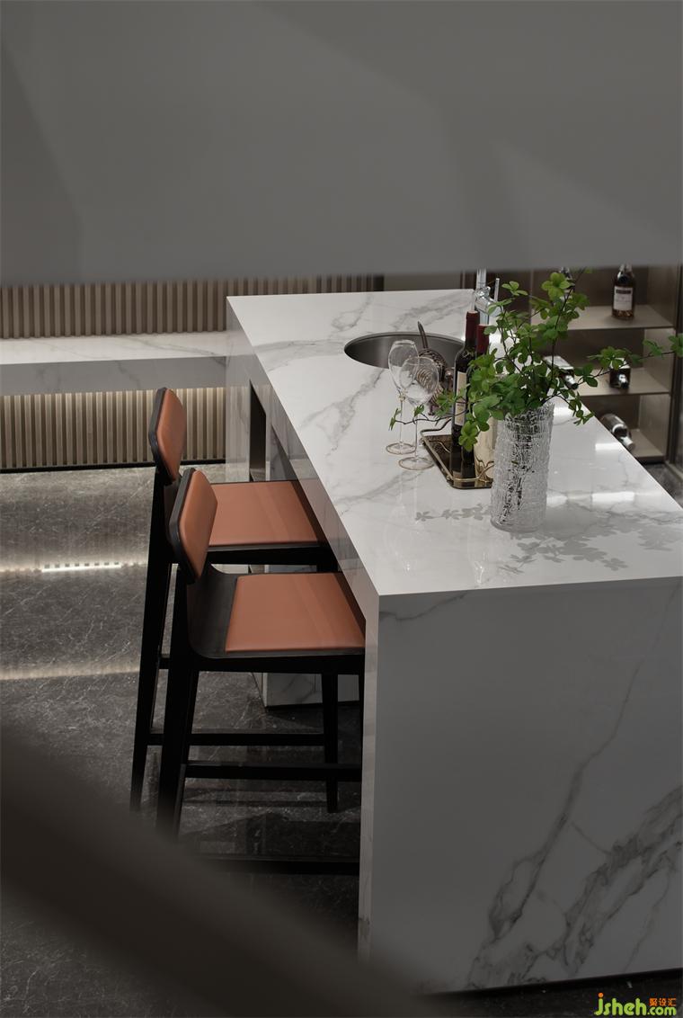 開放式布局讓吧臺(tái)區(qū)成為空間動(dòng)線中的重要節(jié)點(diǎn),樣板間設(shè)計(jì)連通不同的功能區(qū)域。于四季煙火中,邀三五志趣相投好友,品幾杯美酒佳釀,話人生趣事,心神交匯,悠然自得,滋長(zhǎng)生命的厚度。