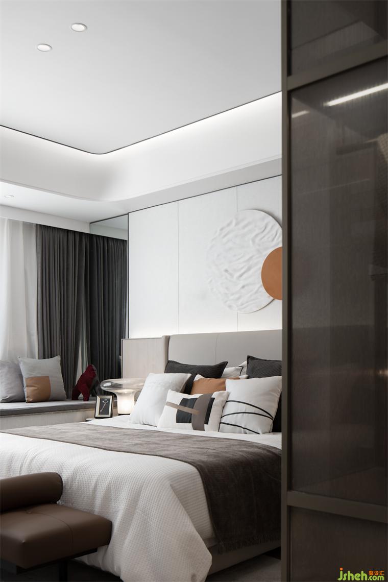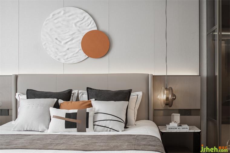 主臥以沉靜溫暖的色調(diào)營造寧靜柔和的空間氣質(zhì),煙波浩渺的海面冉冉升起一輪圓月,樣板間設(shè)計勾勒“月下休憩”的詩意。大面積飄窗延伸空間的更多可能,閱讀、發(fā)呆、靜靜欣賞窗外的風(fēng)景……多種美好在此發(fā)生。