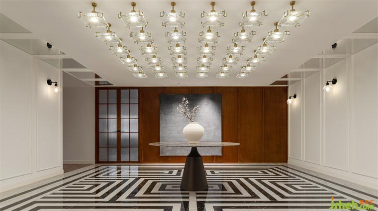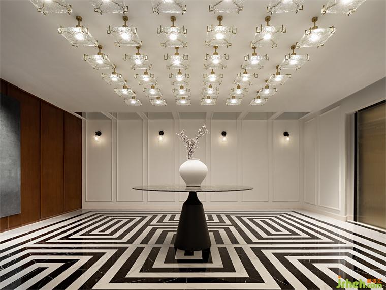 正前方是一面包裹著日月星辰的當(dāng)代藝術(shù)墻,與通往內(nèi)部空間的大門視覺歸一。抓人眼球的愛馬仕橙木飾面和意境畫,與醒目的白色陶罐、黑白回字型地面融為一體,向20世紀(jì)的法國生活致敬。