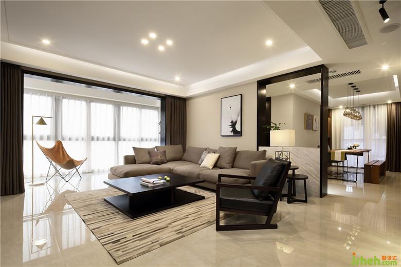 客廳室內(nèi)設(shè)計師以深胡桃木為主調(diào),輔以爵士白大理石,明暗對比相得益彰;頂面去繁就簡,既沒有復(fù)雜的造型,也沒有主燈的累贅。設(shè)計師以極簡的手法,將點光源與線光源融合一體,構(gòu)成和諧的照明系統(tǒng)。