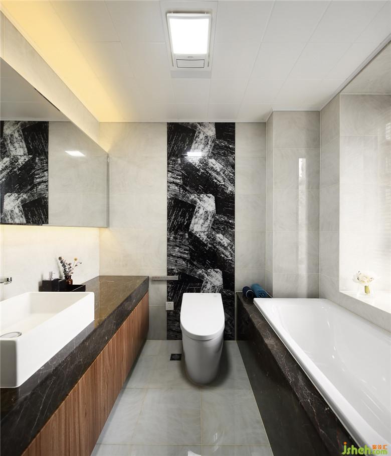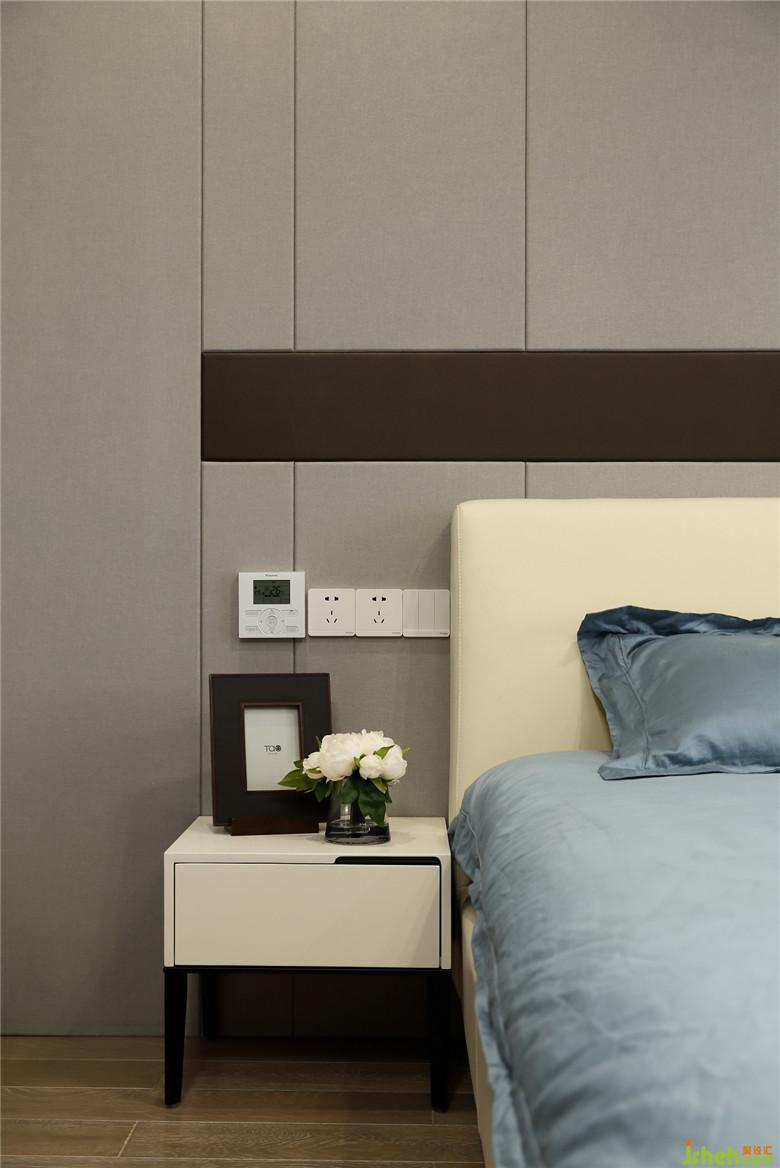 臥室延續(xù)一貫的極致簡約,用科學(xué)的比例計算出來的硬包模數(shù),與淺灰色調(diào)的運用,形成極佳的視覺美感;衛(wèi)生間黑白色加原木色演繹著別樣的時尚感。