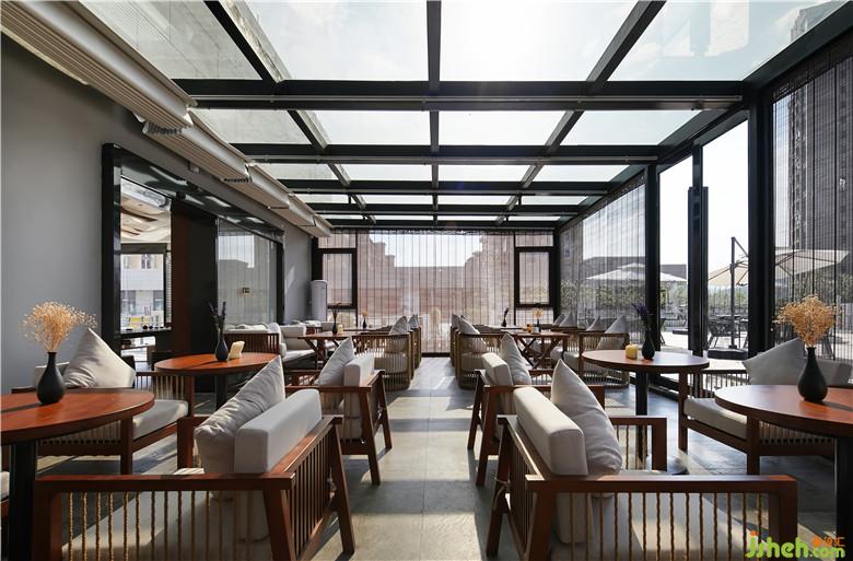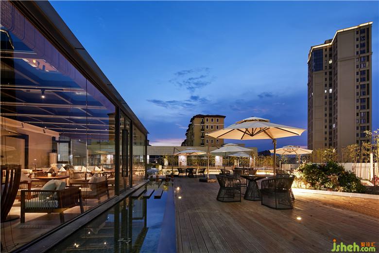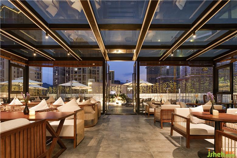 酒店共設(shè)33個房間,親子、大床、標(biāo)間等各類房間數(shù)量比例適中,符合當(dāng)?shù)芈每偷木幼∏闆r。酒店共設(shè)有兩個入口,酒店主入口正對商場電梯,另一則是陽光房與室外陽臺的連接口。酒店的主入口采用向室外開放的設(shè)計(jì),大面積落地玻璃,酒店內(nèi)景直接映入眼簾,靜謐之感油然而生。我們將室外陽臺的入口處的房間設(shè)計(jì)為陽光房,為酒店內(nèi)的客人提供餐廳休閑交流場所,客人也可以在這兒喝喝咖啡,享受陽光的沐浴。寧可食無肉,不可居無竹。竹竿修長而挺拔,青翠的竹葉蘊(yùn)含無限生機(jī),室內(nèi)設(shè)計(jì)師將竹融入酒店外部景觀設(shè)計(jì)之中。白墻,紫竹,讓人仿若置身竹海。沿著酒店外沿的過廊,設(shè)計(jì)師創(chuàng)想了一條觀景面極佳的全景綠色長廊,使外部廊道與酒店內(nèi)景變成一個整體。