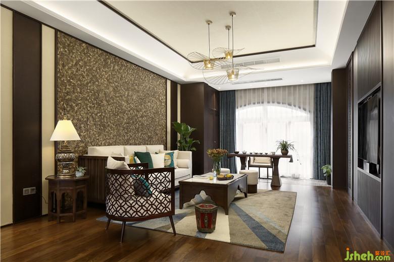 客廳空間色澤室內設計師以檀木色配著米白色的布藝沙發(fā)作為空間重心,搭配著異域風情的抱枕,靈活奏亮了整個空間的氣氛,提升了整個空間的鮮活度。在材質上運用東南亞木材所特有的色澤和紋理,和其他的天然原材料,讓居家空間自然古樸。