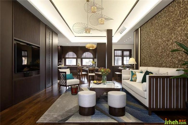 在材質上室內(nèi)設計師運用東南亞木材所特有的色澤和紋理以及一些天然原材料,讓居家空間自然古樸。