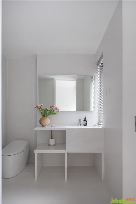 設(shè)計師深度考量居住者的使用體驗,私宅設(shè)計在初始空間布局上構(gòu)建L型洗手間,為身體創(chuàng)造更加舒適的尺度。通體的白延續(xù)空間主旋律,為居住者營造清新純凈的沐浴環(huán)境。