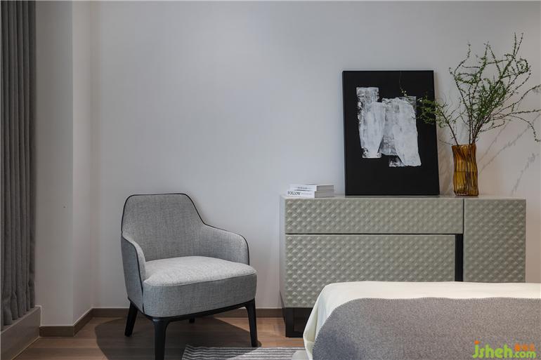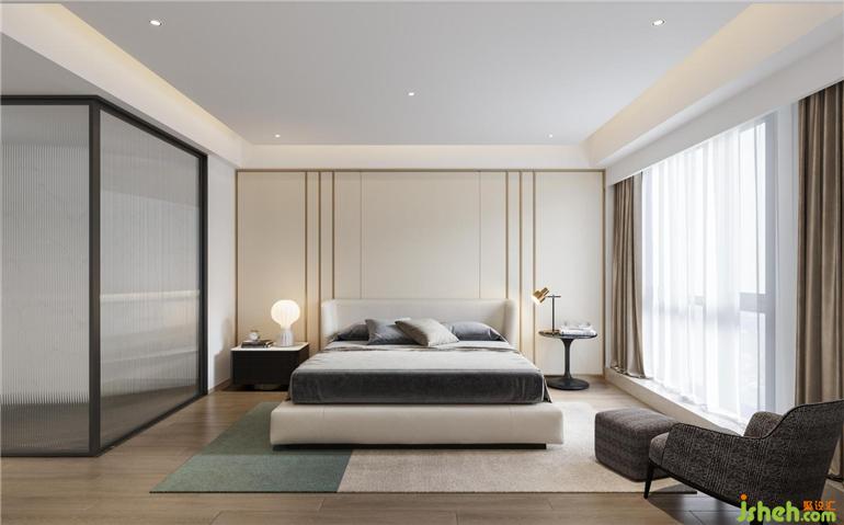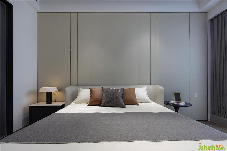 一處美好的居所就像一幕精心排演的話劇,訴說著主人對(duì)生活的熱愛以及對(duì)家人的關(guān)照。在這個(gè)精神與身體歸屬的空間里,呈現(xiàn)生活的本質(zhì)。主臥以簡(jiǎn)約、雅致為基調(diào),大平層裝修設(shè)計(jì)在L型布局的套房設(shè)計(jì)中嵌入步入式衣柜,有效利用空間。半圍合式弧形床頭,搭配白色蘑菇燈,點(diǎn)亮溫柔的夜色,為主人的安眠營(yíng)造一份靜謐和安全感。