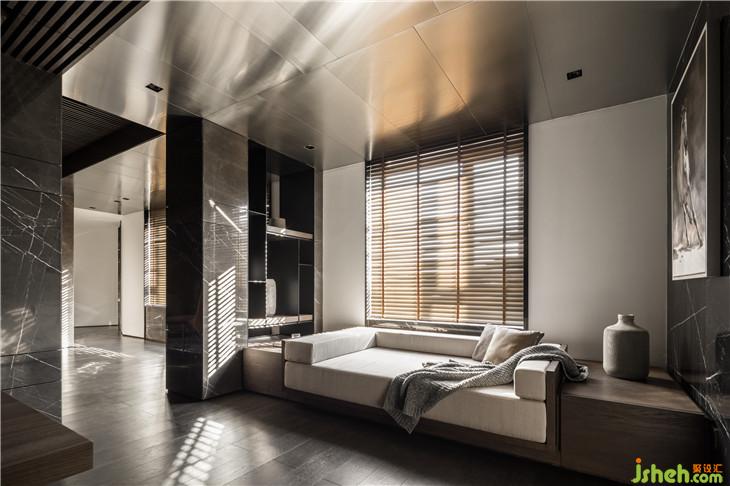 二樓空間的設(shè)定則是僅專屬于一位主人,給予的空間布局是極為享受極為奢華的作法,將原本封閉式的浴室空間打散轉(zhuǎn)換,以一種開放空間的手法,將衛(wèi)浴設(shè)備像是配置家具的概念散落配置在空間中各個區(qū)域,其中包含淋浴間、蒸氣室及獨立缸都以此概念配置,另外加上超大空間的更衣室、影音室及健身房讓整個二樓主臥層,滿足了起居功能及生活興趣、品味的多元空間。