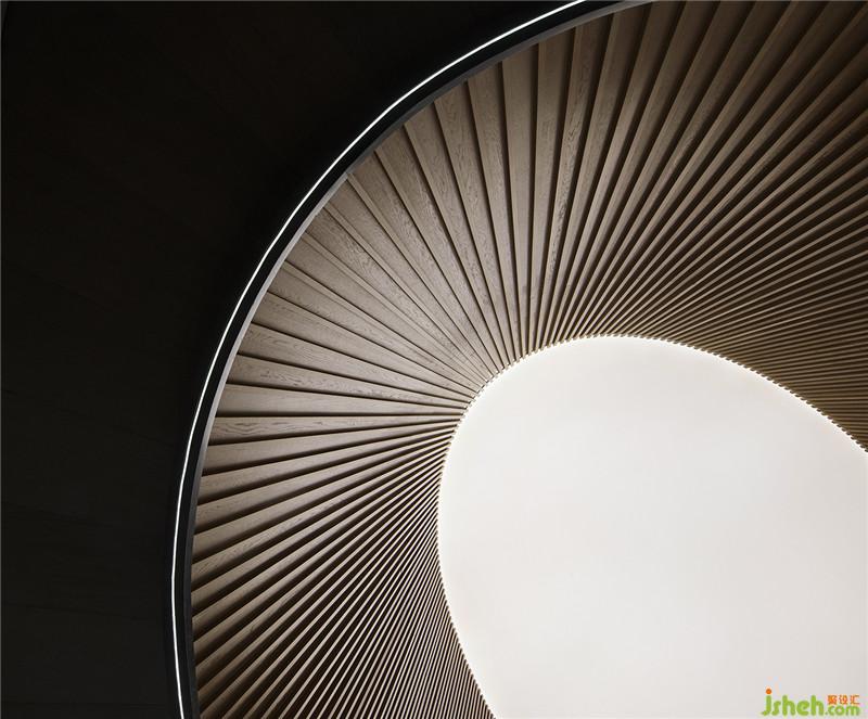 各種水的姿態(tài)在藉著空間中長弧形和圓形的墻面規(guī)劃,弧線化作室內(nèi)一道又一道的量體結(jié)構(gòu),弧墻的韻律配上水的直落線條,體現(xiàn)出了空間中的各種層次.
