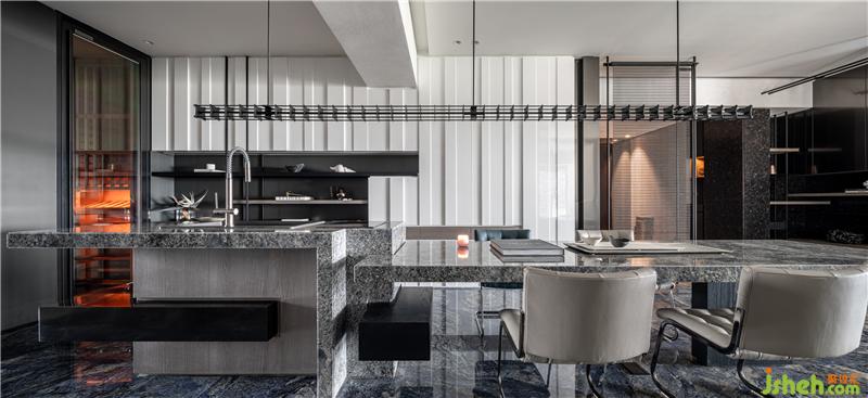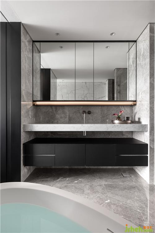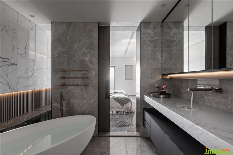 進(jìn)入私領(lǐng)域,先經(jīng)過(guò)一個(gè)灰色空間的設(shè)定,更衣間成了臥室與開(kāi)放空間最好的連接和過(guò)場(chǎng),讓聲音經(jīng)過(guò)時(shí)逐漸減弱,對(duì)于臥室睡眠的質(zhì)量明顯提升到另一個(gè)層次,心境在此也達(dá)到轉(zhuǎn)換的狀態(tài),讓回家比平靜更加安定而完全放松