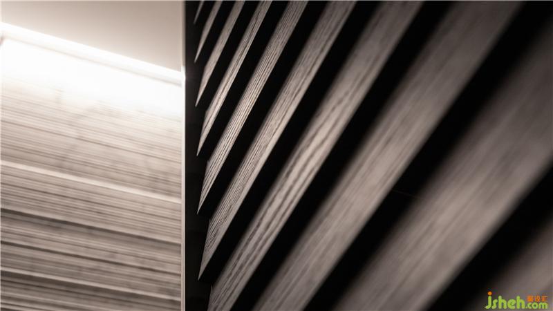 電視主墻下方收納柜的立體斜面會變化隨著時間或不同面向的光源而產(chǎn)生多變的光影對比。