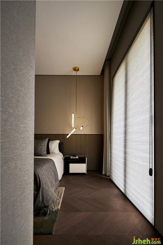 臥室空間,保持最大的開闊性,將室外的綠植光彩引入堂室。主臥回字型的動(dòng)線,希冀悠然不受限的生活體驗(yàn)予人。
