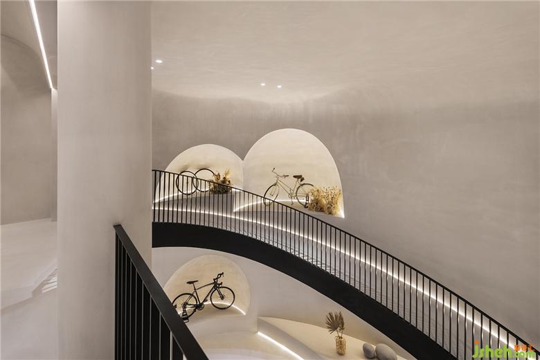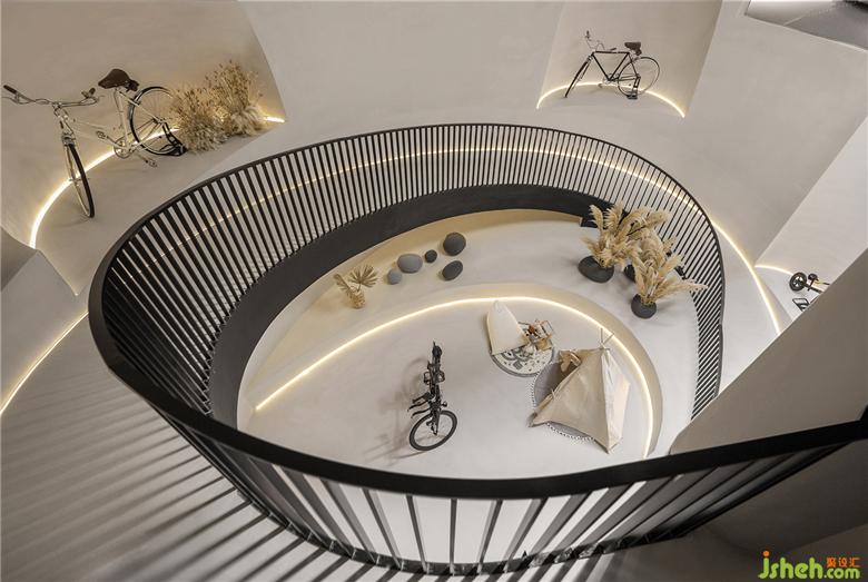 垂直動(dòng)線(xiàn)樓梯與主臥更衣間的天花板造型,增加中式建筑屋頂-盝頂?shù)木€(xiàn)條,樣板間設(shè)計(jì)延續(xù)首層利用現(xiàn)代極簡(jiǎn)線(xiàn)條呈現(xiàn)中式傳統(tǒng)語(yǔ)匯,創(chuàng)造出扶搖直上的空間寓意,二層廊道空間增加開(kāi)放展示柜體,利用不同厚度的立板,實(shí)體與虛體的層板,增加柜體的張力及視覺(jué)的探索,也讓長(zhǎng)形的廊道增加視覺(jué)層次,不再只是剎那間經(jīng)過(guò)的過(guò)度空間,是可以短暫停留觀賞的展示空間。