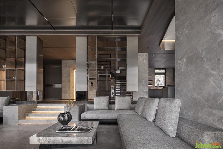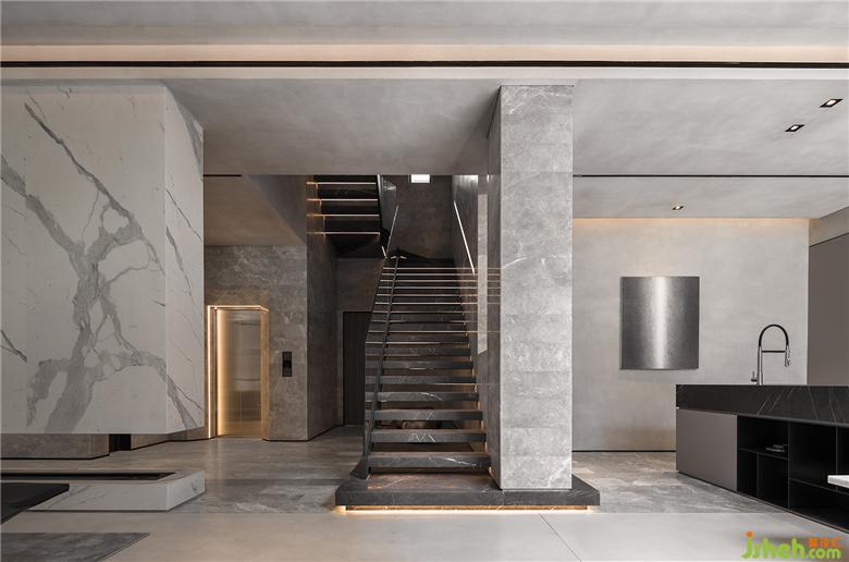 下嵌區(qū)客廳和梯間為的軸線貫穿主要空間