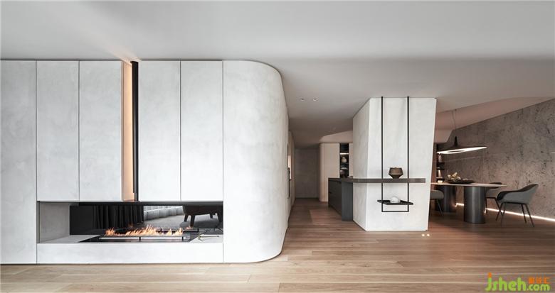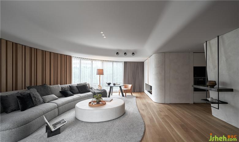 考慮到原始的建筑條件,為空間的調(diào)性做了整體的規(guī)劃,基地坐落于街道的樹海區(qū),自然環(huán)境圍繞著居住者的生活,呼應(yīng)窗外的景色打造出的休閑氛圍,家居裝修對于客廳的想象,不以主墻的形式作為空間的區(qū)隔,將落地電視安排于沙發(fā)和餐廚區(qū)之間,生活隨性,依照需求產(chǎn)生場域的聚集。材料上使用大量木皮格柵,透過木質(zhì)溫潤的特性平衡空間中的溫度,搭配白色石材作為餐廳主墻面,利用不同材質(zhì)更新了場域中主色調(diào)的變化,視覺感受的變化,影響了內(nèi)心,形成了空間中場所的轉(zhuǎn)換。