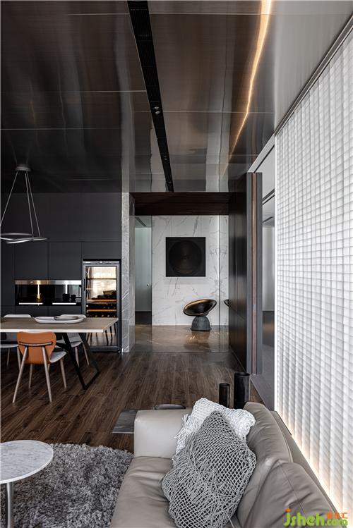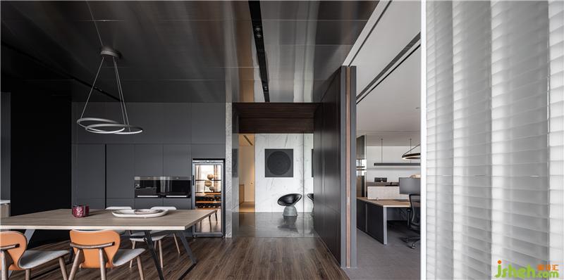 人一天有三分之一的時(shí)間處于工作狀態(tài)中,因此我們希望能將生活氣息帶入工作環(huán)境,讓空間本身能同時(shí)滿足物理和心理上的需求,臺(tái)灣室內(nèi)設(shè)計(jì)師創(chuàng)造出在工作的閑暇之余也能沉淀和放松的環(huán)境。我們?cè)诳臻g中劃分出社交場(chǎng)域、工作場(chǎng)域以及屬于個(gè)人的私密場(chǎng)域,將磨砂玻璃磚的柔和折射光線作為場(chǎng)域中介,軟化隔間的定義。