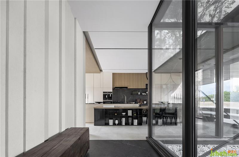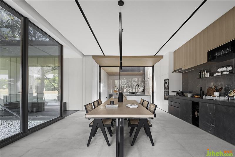 由設(shè)計(jì)師唐忠漢設(shè)計(jì)的「三亞 國美·海棠灣」獨(dú)棟別墅項(xiàng)目,地上在整體空間的規(guī)畫,將所有的空間尺度敞開,透過一層層空間縮放,三亞樣板房設(shè)計(jì)層次性的步入不同空間。車庫、玄關(guān)、客廳、景觀區(qū)過道、西廚,戶外挑空區(qū)、茶室,每一層次空間僅透過地坪或透明玻璃界定不同機(jī)能性質(zhì),使得是視覺的效益不被空間墻體給局限。
