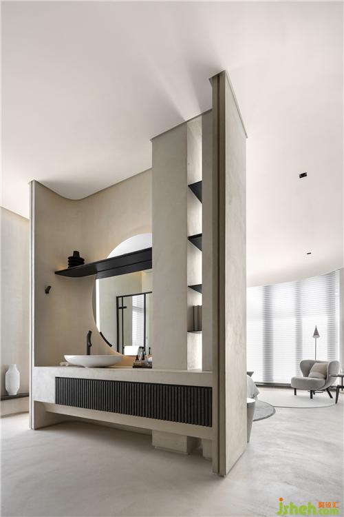 房間的壁面及天花板以弧形收尾,帶點女孩的俏皮風(fēng)格,衛(wèi)浴面臺更是以包覆感受的弧線壁面,讓鏡面與層架交集結(jié)合,線與面的優(yōu)美展現(xiàn)便顯現(xiàn)于眼前。