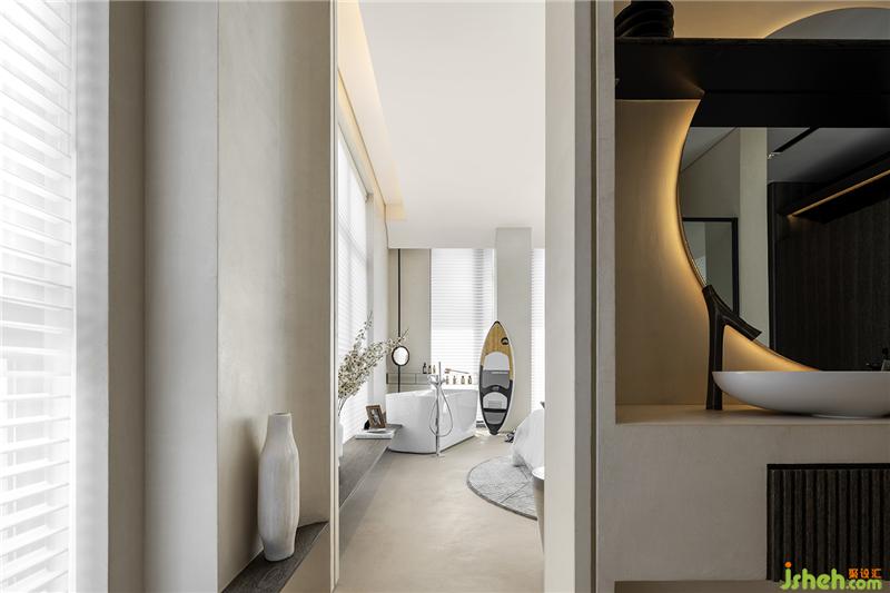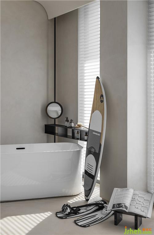 誰說泡澡只能在衛(wèi)浴中享受,把浴缸獨立置放于房間里,旁邊擺放著方才去海邊的潛具,以泡澡來結(jié)束一整個下午的運動時光。睡前坐在床頭閱讀早晨的尚未讀完的小說,轉(zhuǎn)身放置于床背墻中簍空層架,熄燈休息。