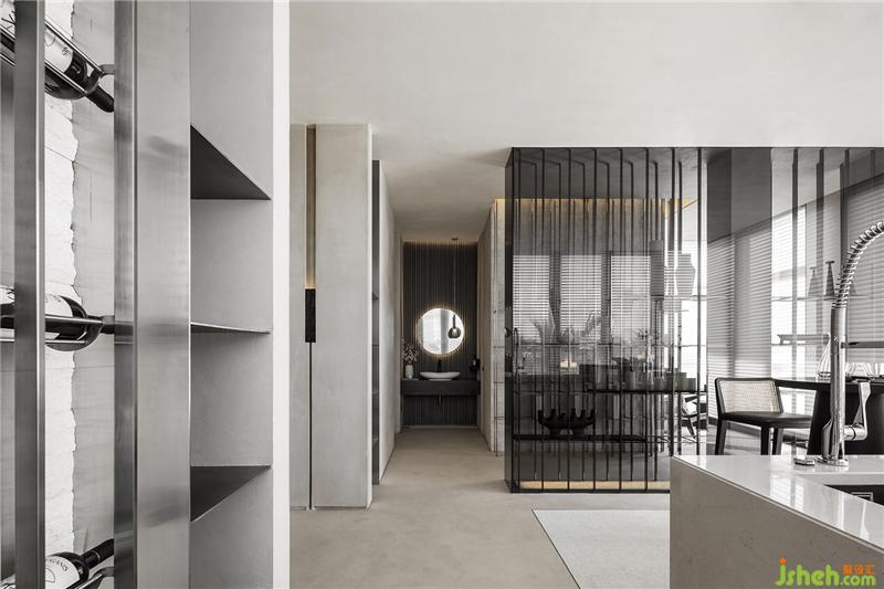 一入梯廳即為一開放延伸空間,用微建筑的概念創(chuàng)造出一條私密的軸線,最適當(dāng)?shù)膶菍釉撚械臋C(jī)能,都縝密的收在這條軸線,合于空間。