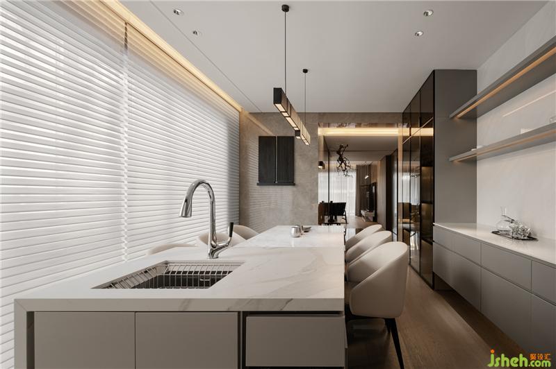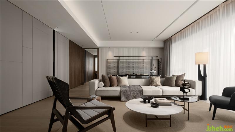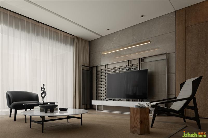 A戶形呈現(xiàn)出不同以往人文風(fēng)格的設(shè)定,運(yùn)用底蘊(yùn)溫厚的真實(shí)材料,在沉穩(wěn)與度假感之間取得協(xié)調(diào)。