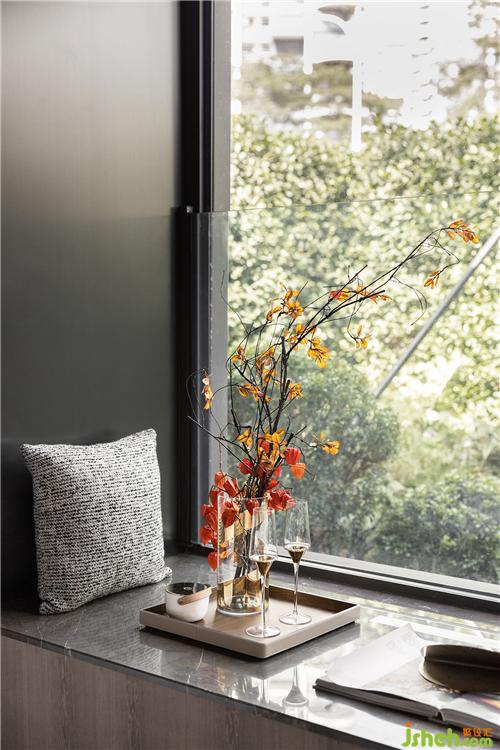 凸窗借景于室現(xiàn)代內(nèi)斂的空間手法,俐落卻不失多變換的風(fēng)景及生活軌跡,客廳大面積的開窗,深圳樣板房設(shè)計(jì)除了造型層面之外,更賦予空間產(chǎn)生自然的氣息,依著景致對坐,公區(qū)的氣場自然形成。