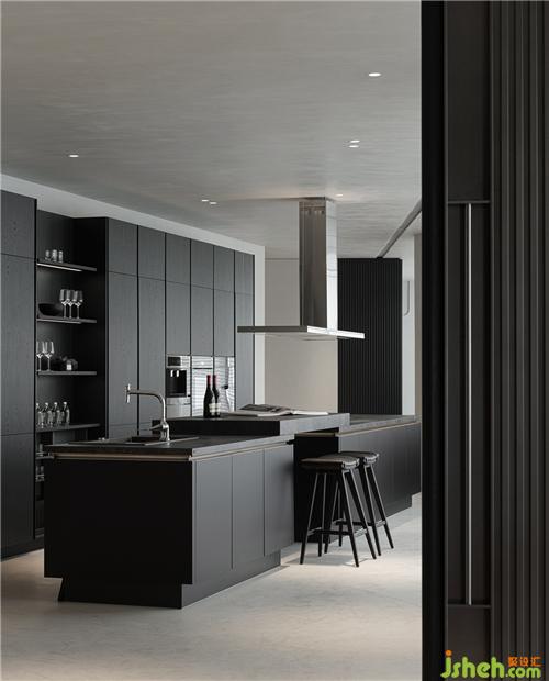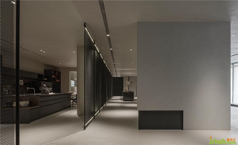在平面構(gòu)成的語(yǔ)言上,利用“L”形墻體的前后關(guān)系,引導(dǎo)動(dòng)線的同時(shí),分隔出櫥柜區(qū)與獨(dú)立展示島臺(tái)空間,沈陽(yáng)展廳設(shè)計(jì)造型墻轉(zhuǎn)角使用了銳角造型,以帶極劇扭轉(zhuǎn)的銳角造型向外拓展,展開(kāi)島臺(tái)區(qū)寬敞的線型面積,拉長(zhǎng)橫向視覺(jué)提供場(chǎng)域中的廣度。