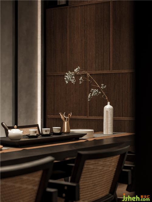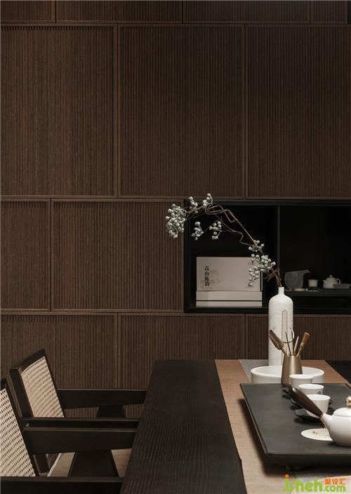 The crisscrossing arcs on the ceilings of the walk-in closet extend the style elements of the overall space. The open closet frees the space of the narrow corridor. The hanging iron pieces present the lightness of the closet and reduce the oppression of the walk-in closet. The leather backboard further increases the texture. On the white lacquered wall in the bedroom, the linear division adds the expressions of the space. The dark-color leather headboard accompanied by the mildness of the wood veneer looks like a girl with the outstanding temperament, cold demeanor, elegant posture, and passionate heart.
