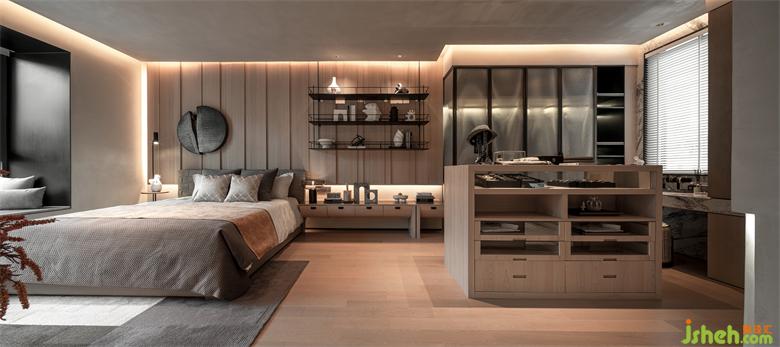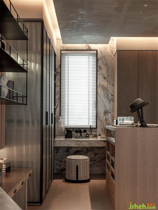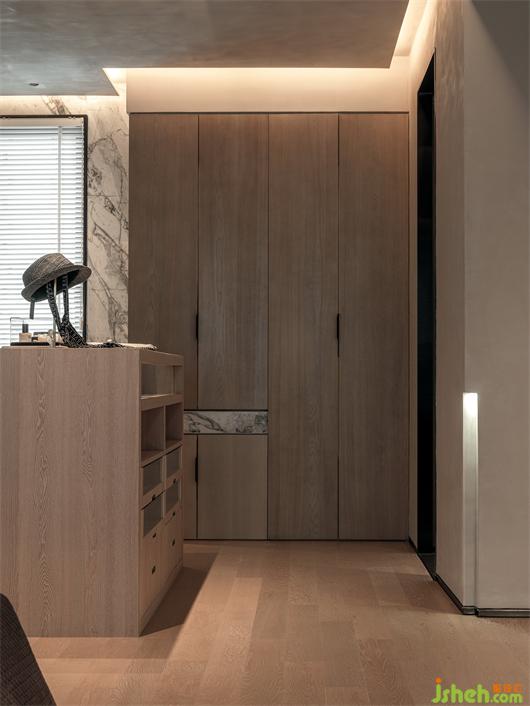 入戶的玄關(guān),樣板間設(shè)計了具有儀式感的鞋帽空間,同時用空間區(qū)分出一處彰顯室內(nèi)外之間的中介空間。整體空間的色彩設(shè)定以大自然的石材、木皮組成的淺灰階調(diào)性,使空間溫潤自然。
