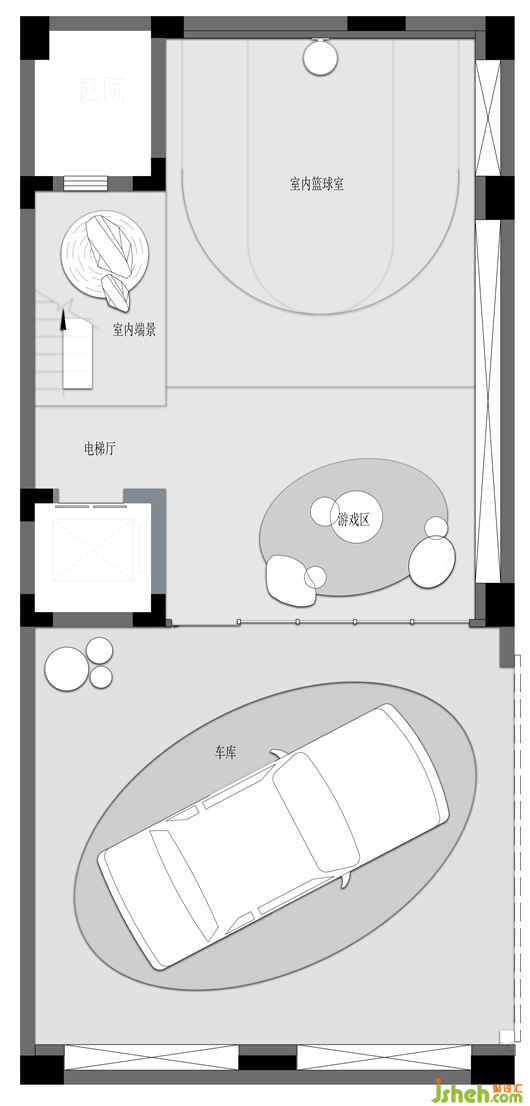 挑高的地下室,以灰色基調(diào)為伊始,結(jié)合線條與金屬質(zhì)感,為空間注入精致與高級感。