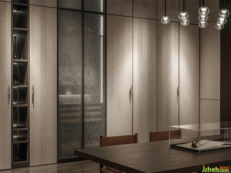 鏡射軸線的延伸,利用單純的材料 延展而出不同深淺的柜體表面