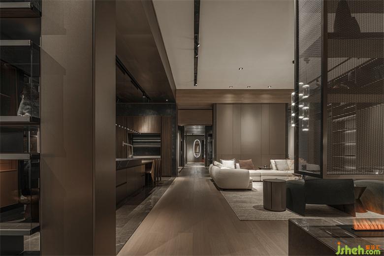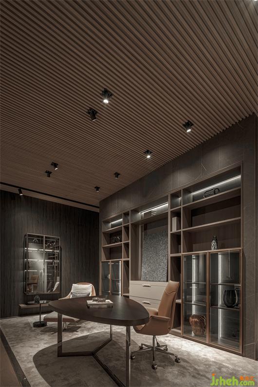 大面積運(yùn)用格柵天花與金屬材質(zhì)搭配