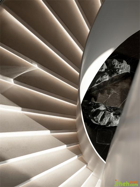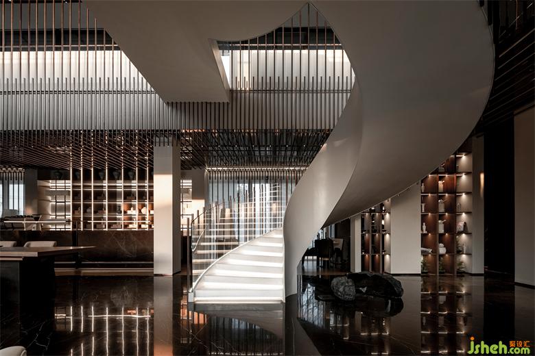 站在空間中心處,以洽談長桌爲中軸、藝術樓梯爲核心??梢韵騼蓚€分支張望,讓游者自然的就順著光和景觀,愉悅地徜徉其中。
