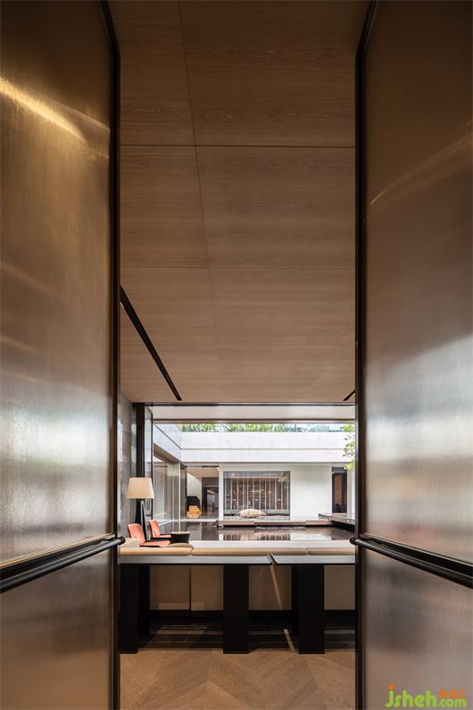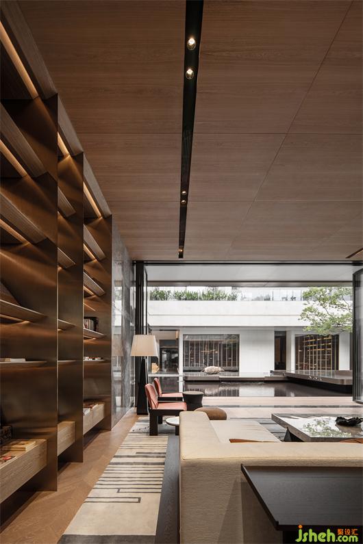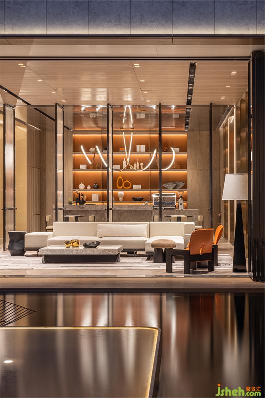 售樓處操作方式有別于以往的臨時性建筑,利用天然的地勢高差將主建筑的負(fù)一層打造為售樓處,采用私人社交俱樂部的營運(yùn)設(shè)定結(jié)合高定化會所機(jī)能,未來售樓階段結(jié)束后直接轉(zhuǎn)化為會所,交由專業(yè)營運(yùn)機(jī)構(gòu)采用會員制運(yùn)營,為小區(qū)提供社交空間。