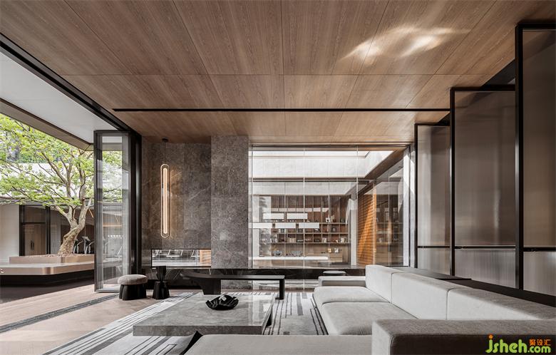 項(xiàng)目位于廣州增城荔枝文化公園邊上,緊鄰公園內(nèi)600畝綠色森林,綠意環(huán)繞,會所設(shè)計(jì)項(xiàng)目宗旨希望打造隱身在綠色樹海中的世外桃源,透過行徑的路線與空間的序列排布,營造出沉浸式的空間體驗(yàn)。