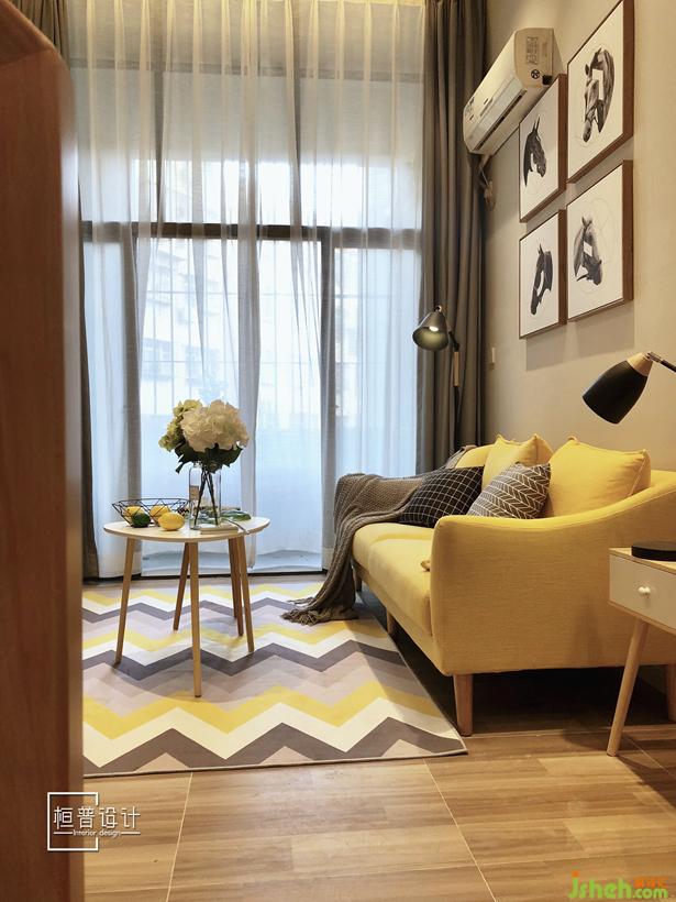 為了讓原本并不太寬敞的空間可以更加的開(kāi)闊,所以客廳與餐廳并沒(méi)有做區(qū)域間隔,整體淺駝色的背景讓空間更加的整體統(tǒng)一,而家具選用了北歐風(fēng)格常用的木色,并增加了非常跳躍的色彩,讓整體空間顯得格外溫馨,與經(jīng)典黑白灰配色相比更具活力,更適合年輕人的對(duì)生活的追求。設(shè)計(jì)公司
