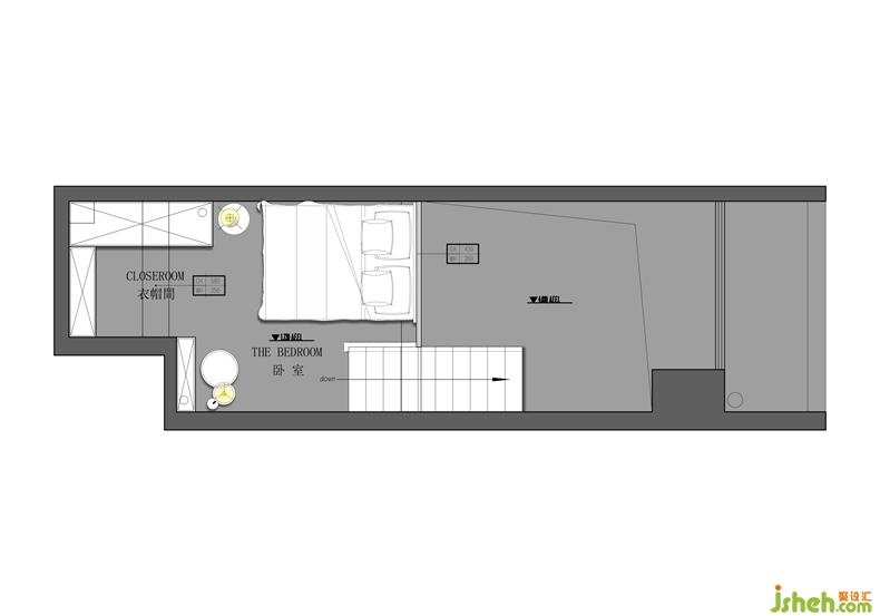 因為考慮是單身公寓的原因,二層空間設(shè)計為半開放形式,比起隔墻落地玻璃的的形式會大大增加空間的采光,配上輕柔的紗簾也保留了空間私密性。讓整體空間即明亮開闊又不失空間的功能性。深圳室內(nèi)設(shè)計師